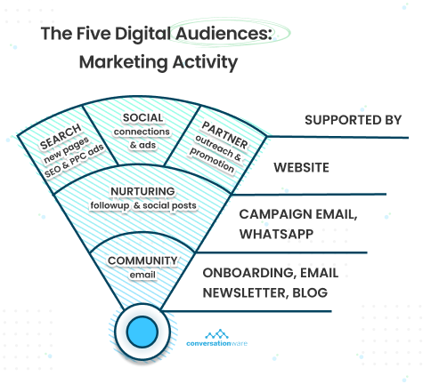 Deciding what to say, when and which communication to use is tricky. But doing everything in the same place is less than optimal – maybe these diagrams will help.